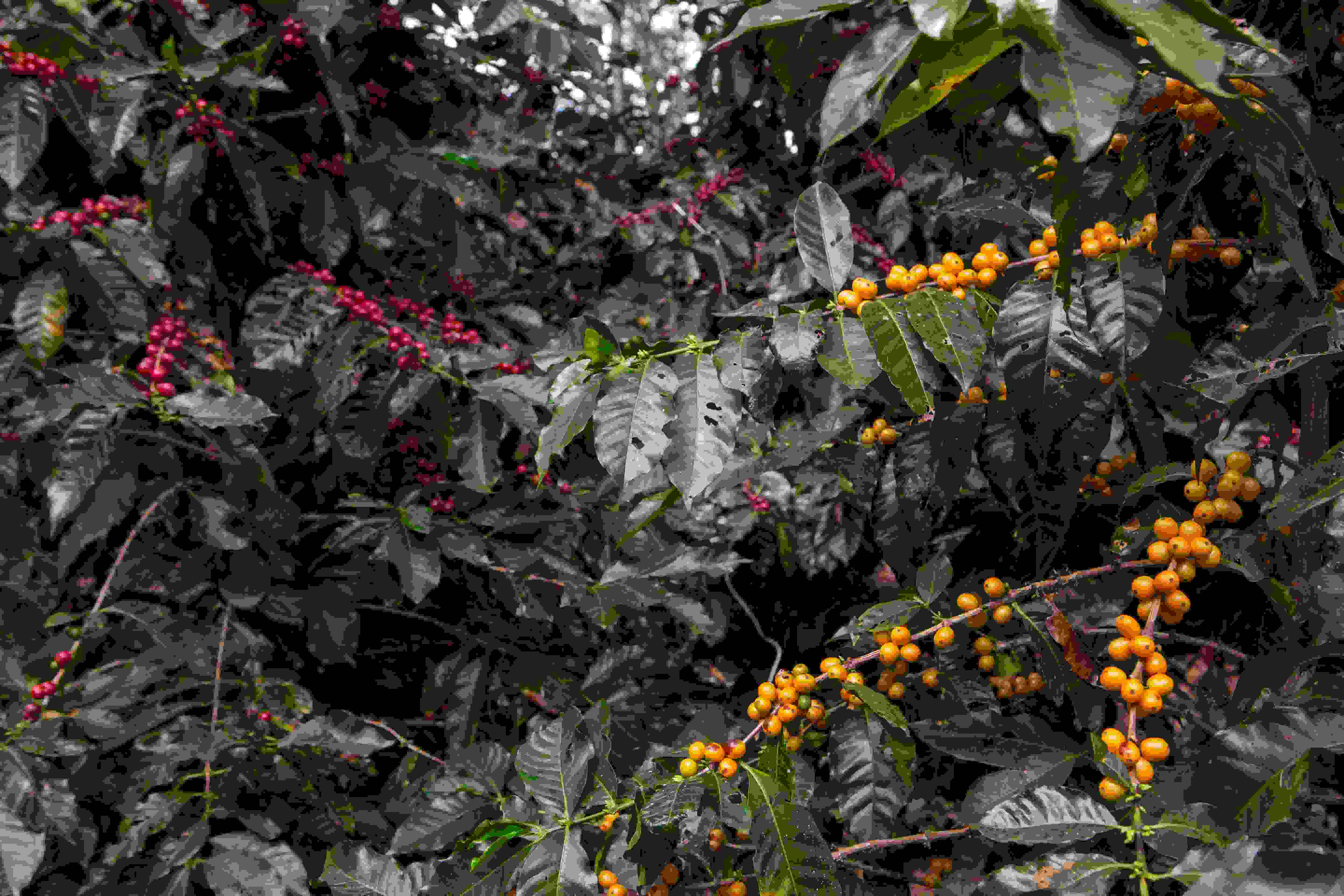 El café de Marilú crece entre árboles frutales que proporcionan sombra y protegen el suelo, una práctica conocida como agroforestería. Se trata de sistemas estratificados que funcionan como un bosque: los cafetos crecen bajo árboles como el banano o los cítricos, mientras especies maderables más altas se elevan por encima.